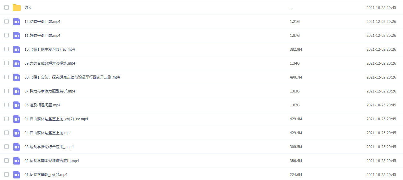 此课件来自作业帮网校,何连伟2021秋季高一物理秋季尖端班 秋季班更新12讲。主讲何连伟老师讲课很遵循学生的学习规律,不仅夯实基础,还能在课堂气氛中学习物理。此课件主要知识点:运动学基础、运动学基本规律综合应用、运动学推论综合应用、自由落体与竖直上抛、追及相遇问题、弹力与摩擦力题型精析、力的合成分解方法提炼、静态平衡问题、动态平衡问题。