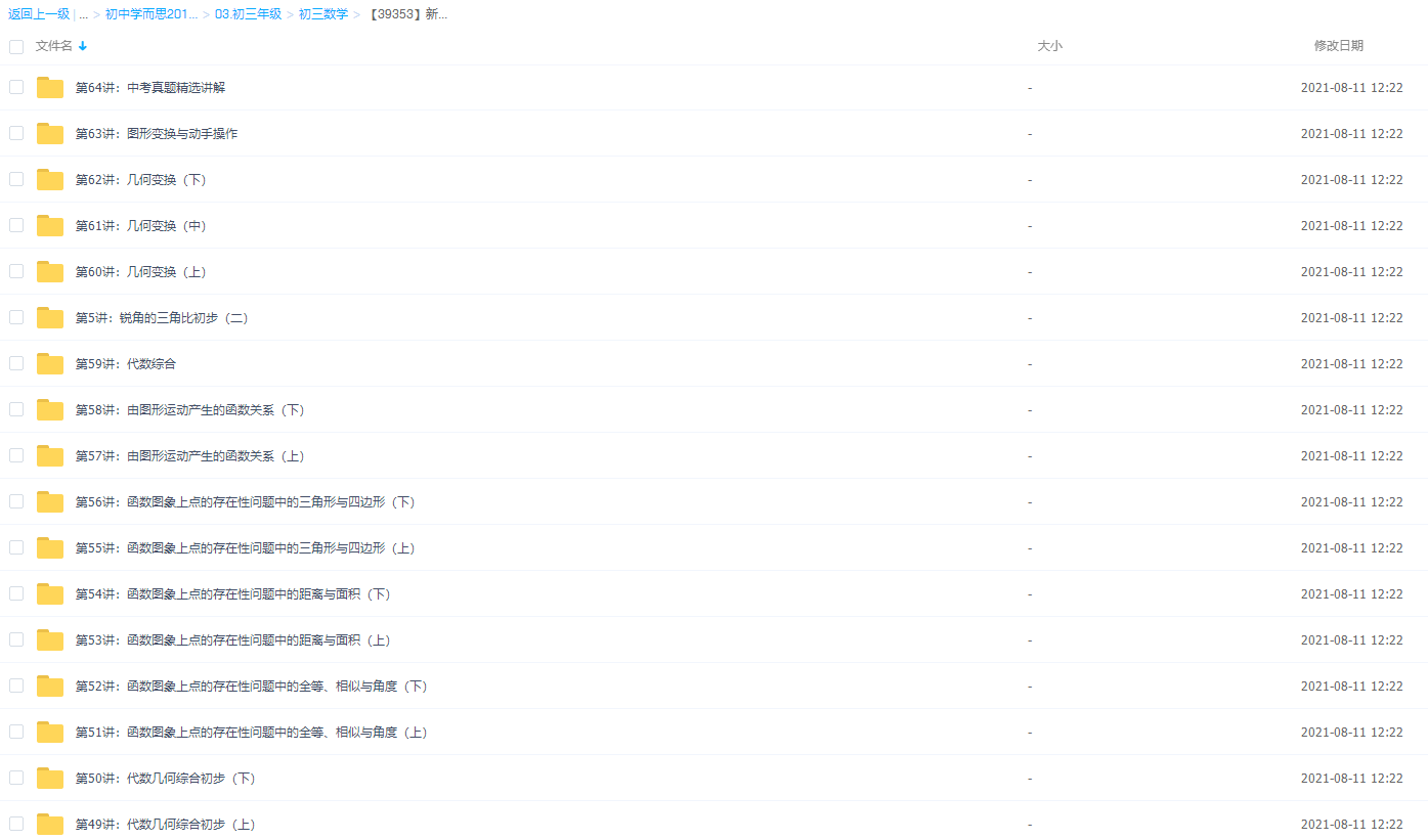 此课件来自学而思网校,【39353】新初三数学年卡尖子班(上海沪教版)【朱韬-64讲】,包含视频课程和讲义资料 。此课件的主要内容包括:几何变换(中考必考难点真题精讲)、正多边形和圆与圆中的计算知识点、二次函数的实际应用等等视频。