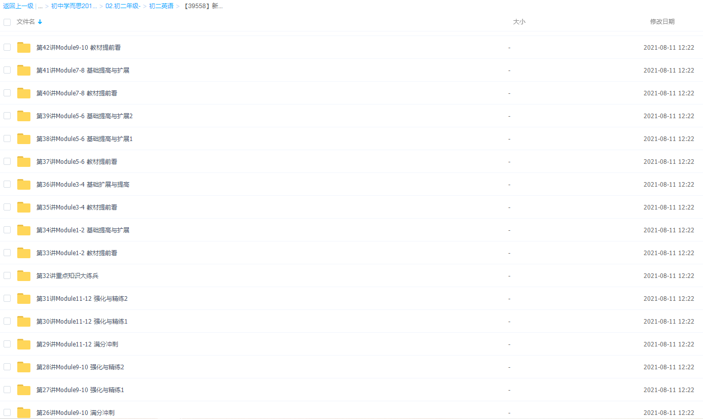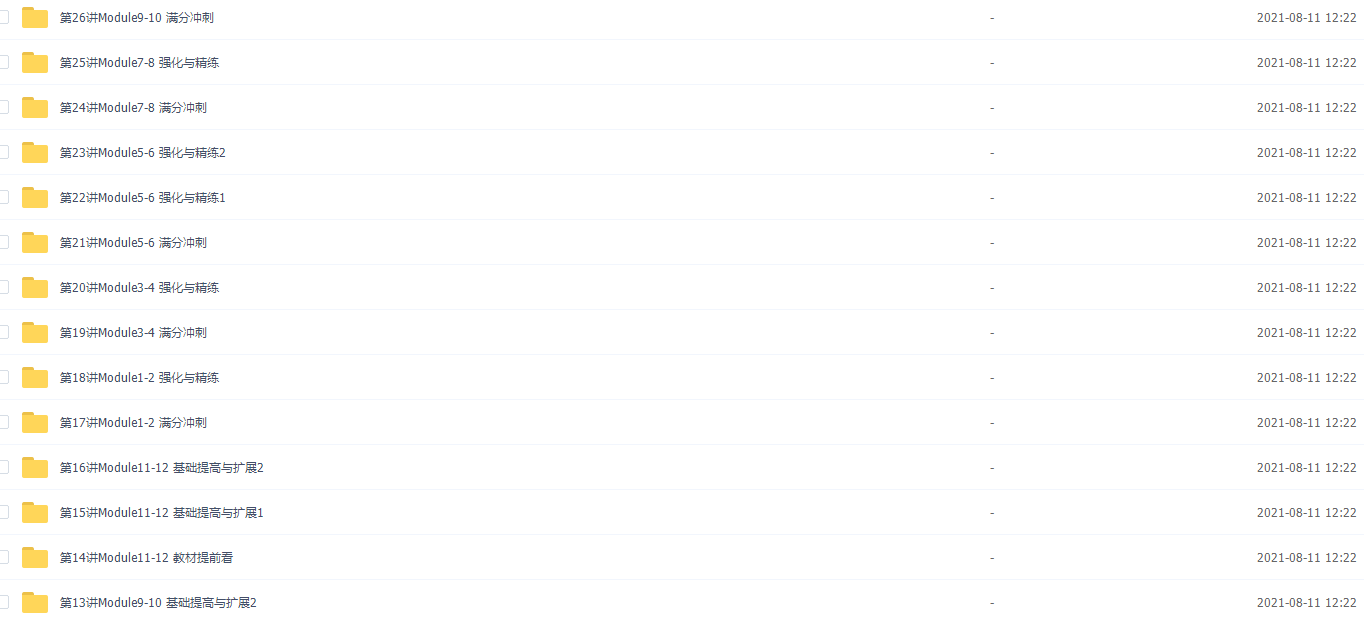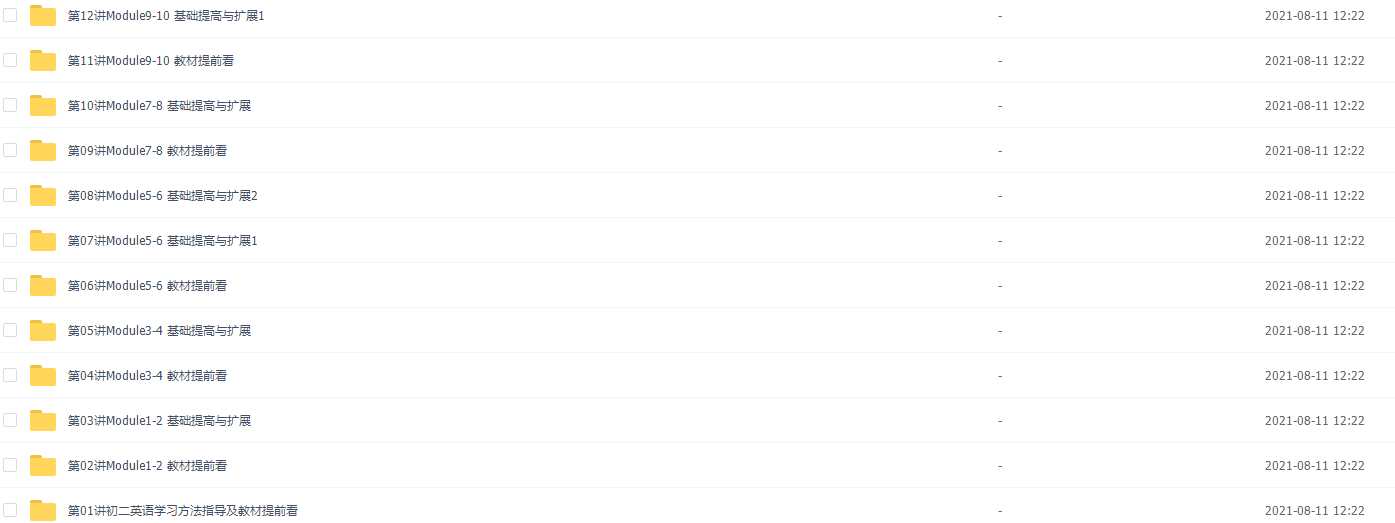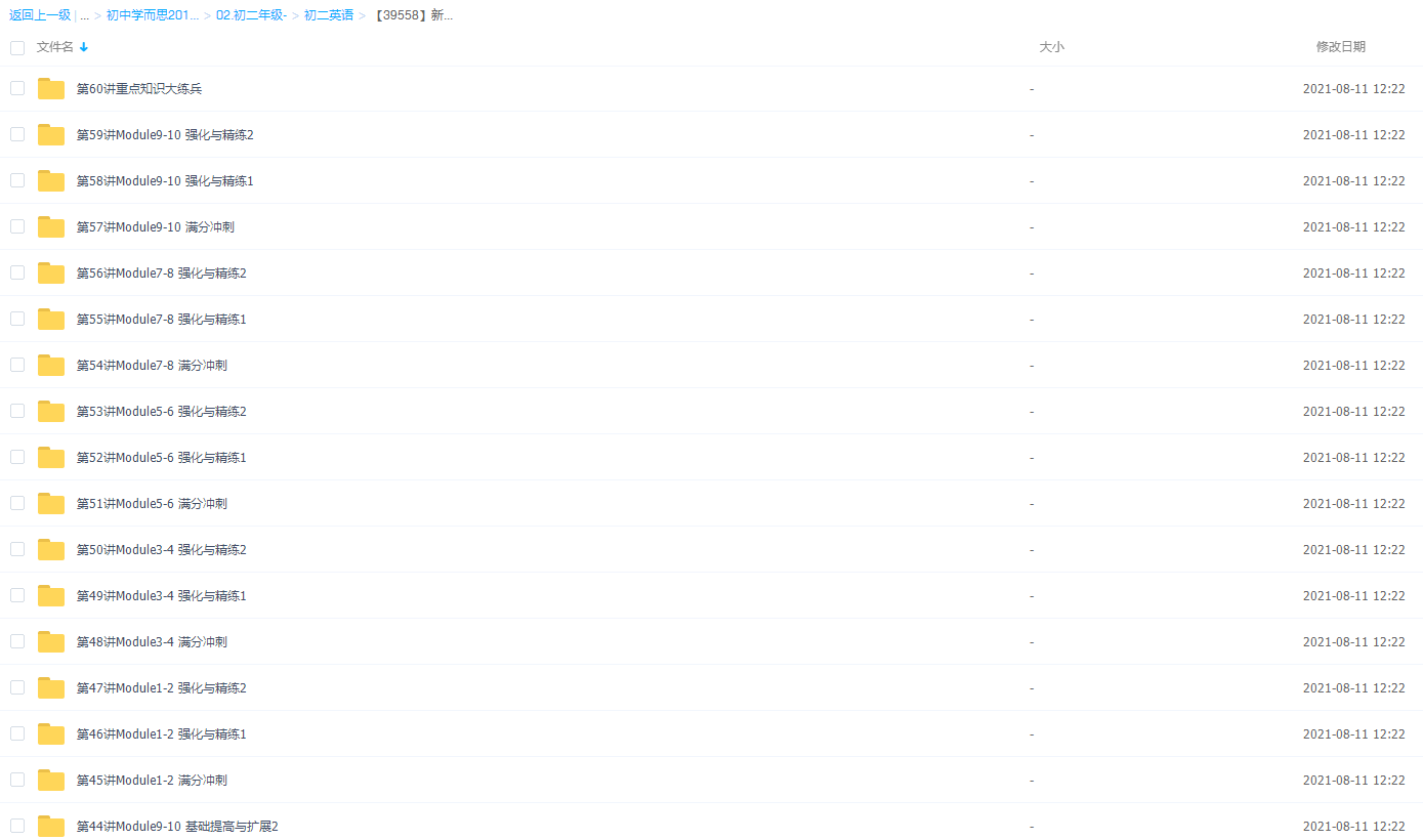 此课件来自学而思刘飞飞初二英语年卡视频课程(外研版尖子班难点精讲),此课件的主要内容包括: Module11-12 基础提高与扩展、Module1-2 强化与精练、初二下重点语法状语从句、二下课内话题词汇扩展与巩固、初二上教材难点精讲、初二下重点语法直接引语与间接引语 等等视频。