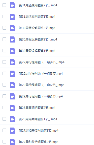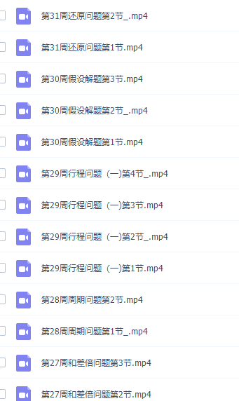 此课件来自小学奥数举一反三四年级奥数课程,此课件主要知识点包括:寻找规律、简单推理、解决问题、算式之谜、最优问题、巧妙求和、错中求解、简单列举、植树问题、图形面积、巧妙求和、巧算年龄、假设解题等等视频课程。